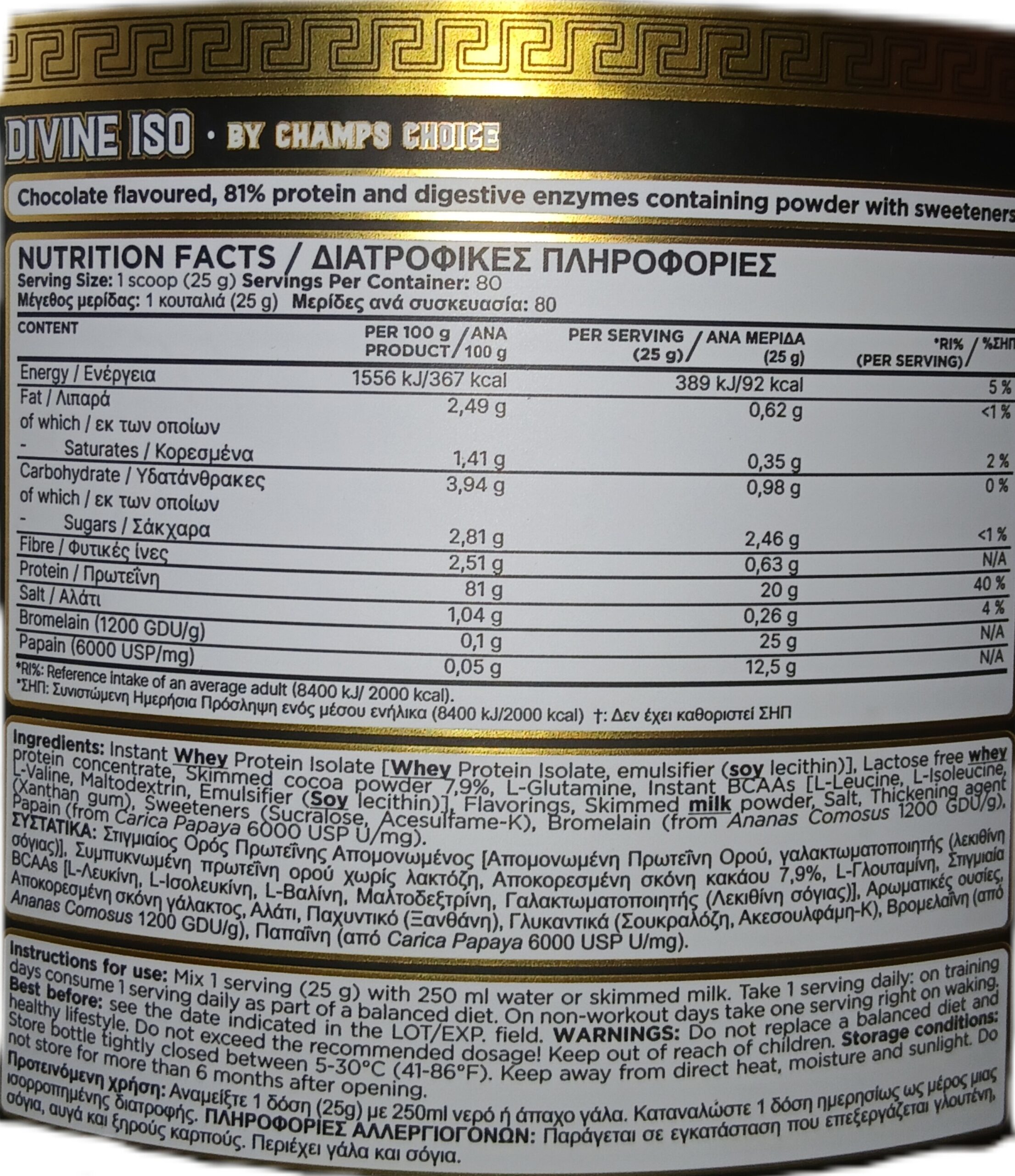 Η Divine ISO φέρνει την απόλυτη εμπειρία πρωτεΐνης isolate στο τραπέζι σου — υψηλή απορρόφηση, εκπληκτική γεύση και καθαρή αποτελεσματικότητα.